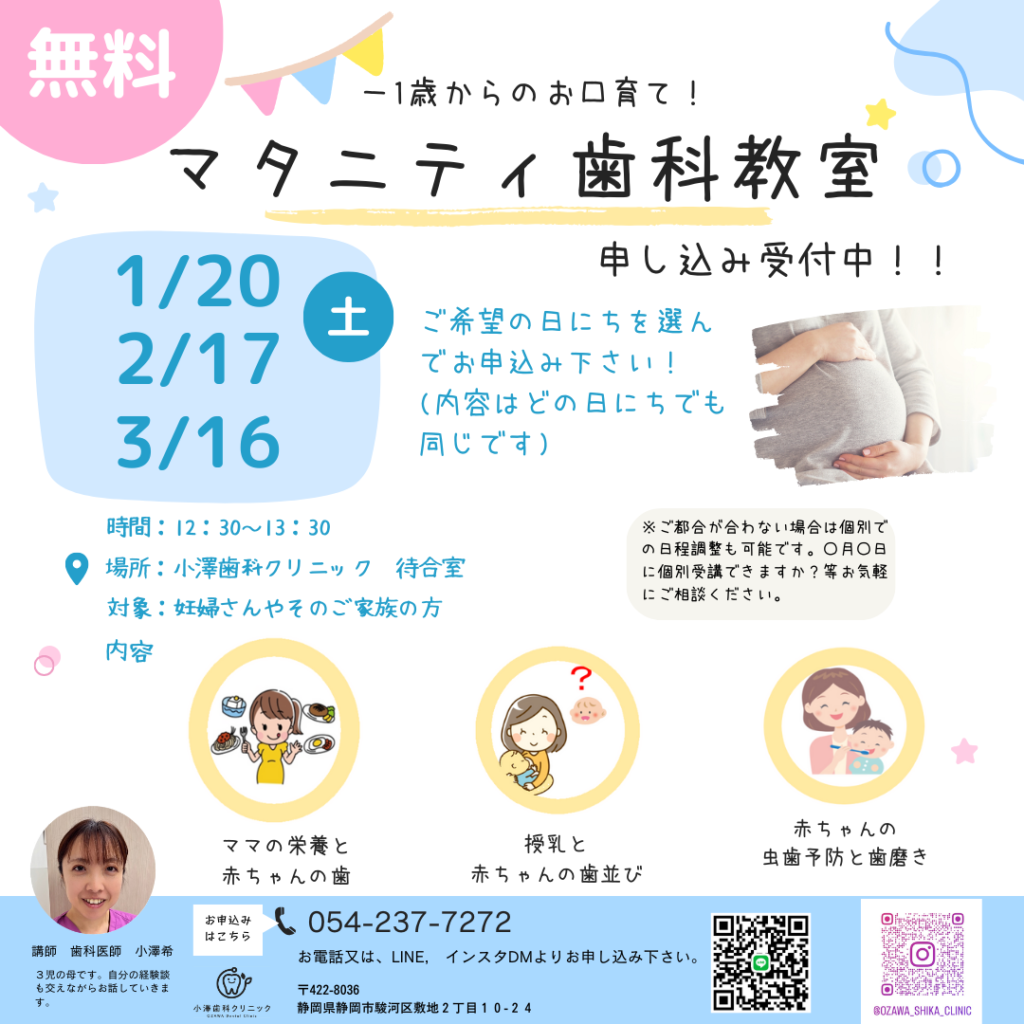 マタニティ歯科教室参加申し込みの受付を開始しましたのでのお知らせします。