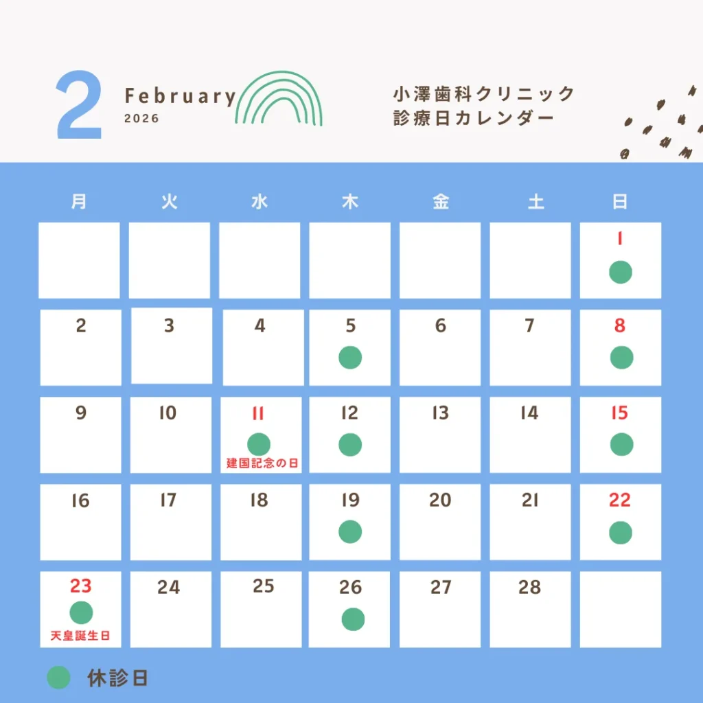 2月の診療日カレンダー2026.01.272月の診療日は上記のカレンダーの通りとなります。2026年1月5日より診療時間が午前9時~12時半 午後15時~18時半に変わっています。紛らわしくて申し訳ありませんが、お間違えの無いようご来院ください。 内覧会無事終わりました。ありがとうございます。前の記事