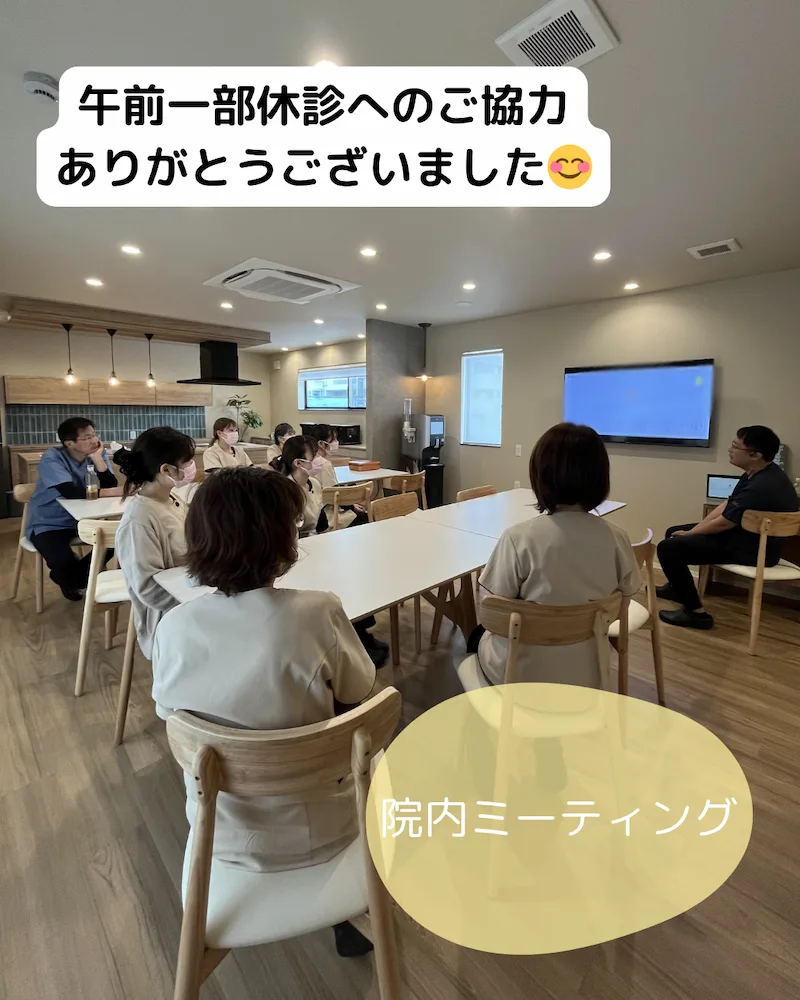 当日は午前の診療を一部休診にしてミーティングを行いました。患者様には診療時間の変更にご協力いただいたきありがとうございます。